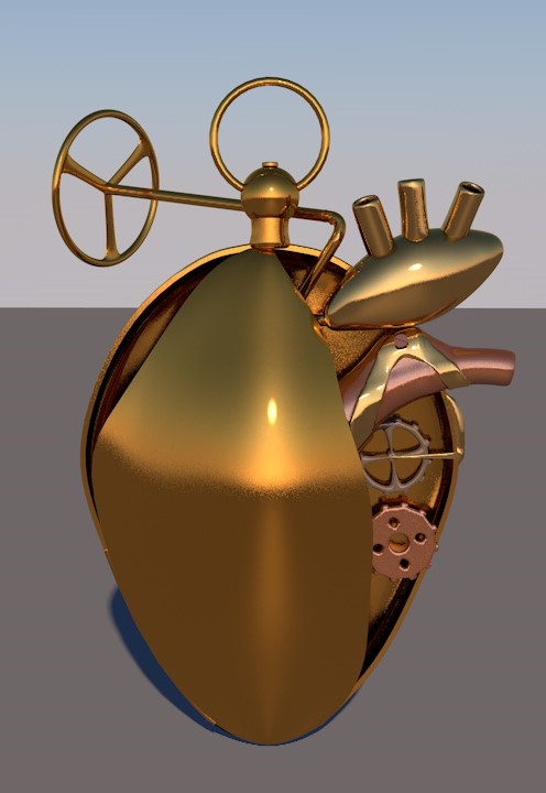 A stylized 3D steampunk heart I did for a uni course, done in Cinema 4D.